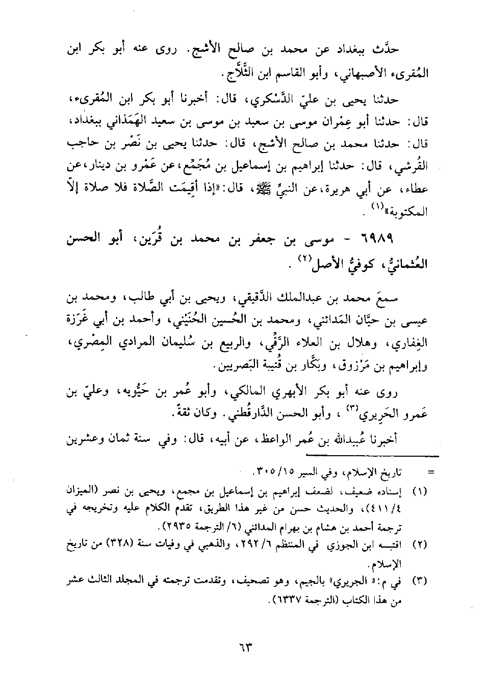 6989 - موسى بن جعفر بن محمد بن قرين أبو الحسن العثماني، كوفي الأصل سمع: محمد بن عبد الملك الدقيقي، ويحيى بن أبي طالب، ومحمد بن عيسى بن حيان المدائني، ومحمد بن الحسين الحنيني، وأحمد بن أبي غرزة الغفاري، وهلال بن العلاء الرقي، والربيع بن سليمان المرادي المصري، وإبراهيم بن مرزوق، وبكار بن قتيبة البصريين.