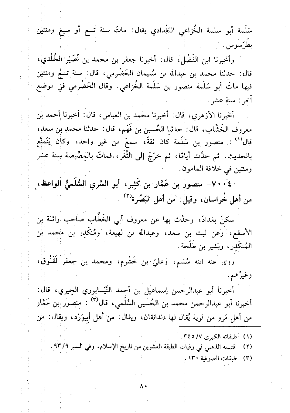 7004 - منصور بن عمار بن كثير أبو السري السلمي الواعظ من أهل خراسان وقيل: من أهل البصرة،