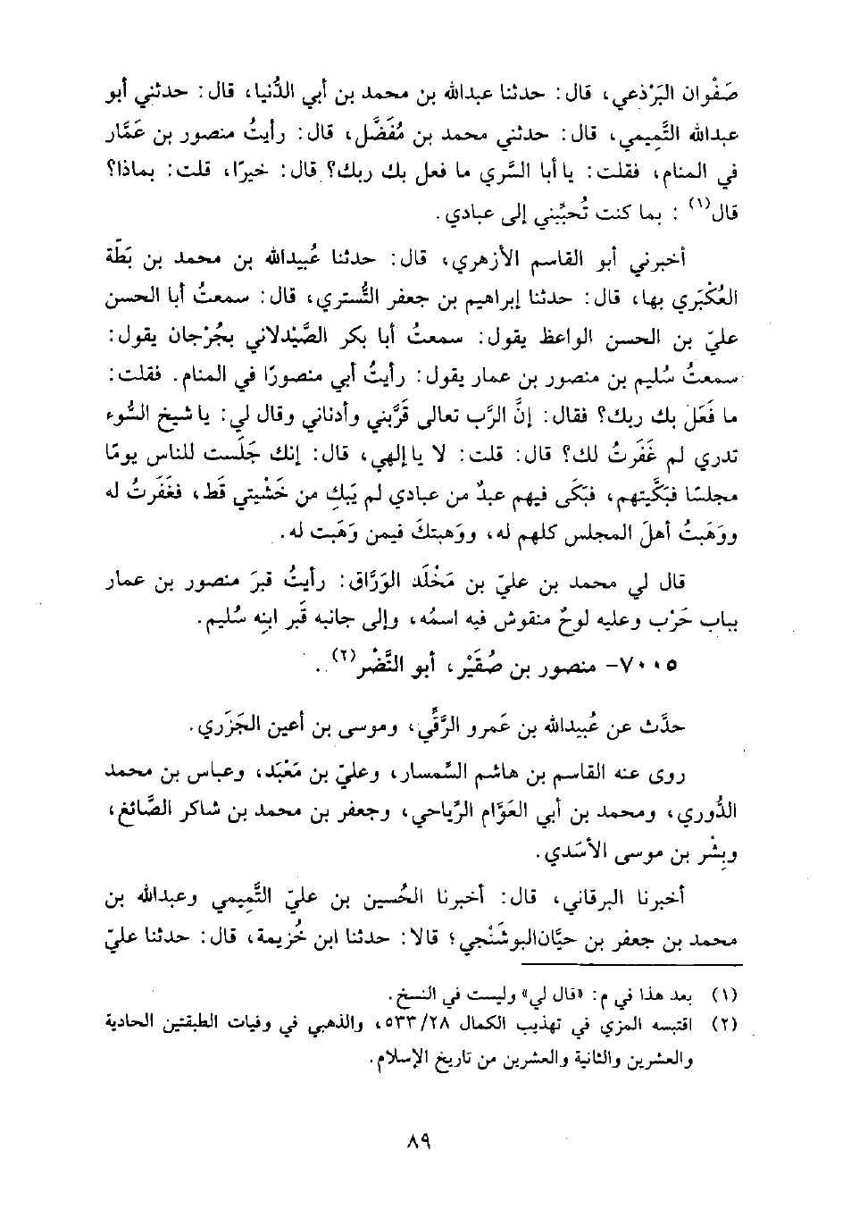7005 - منصور بن صقير أبو النضر حدث عن عبيد الله بن عمرو الرقي، وموسى بن أعين الجزري.