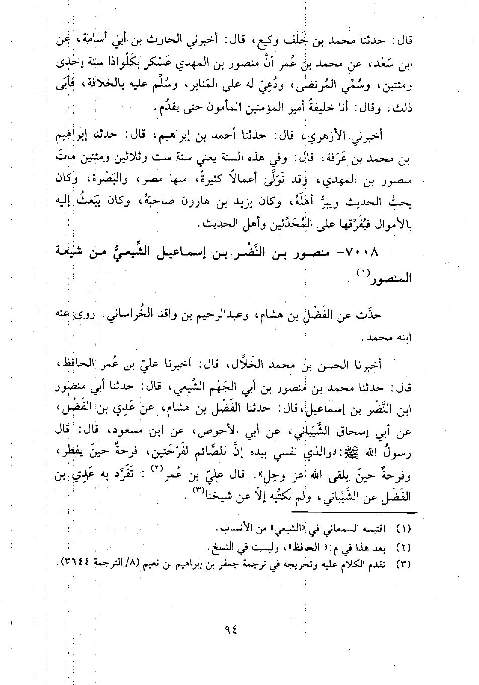 7008 - منصور بن النضر بن إسماعيل الشيعي من شيعة المنصور حدث عن: الفضل بن هشام، وعبد الرحيم بن واقد الخراساني.