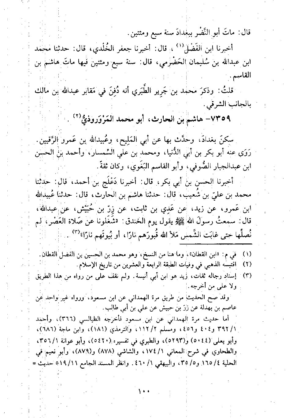 7359 - هاشم بن الحارث أبو محمد الْمَرْوَروذِيّ سكن بغداد، وحدث بِها عن: أبي المليح، وعبيد الله بن عمرو الرقيين.