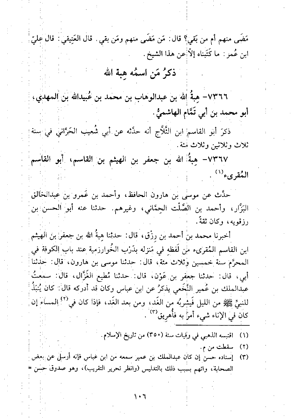 7366 - هبة الله بن عبد الوهاب بن محمد بن عبيد الله بن المهدي أبو محمد بن أبي تَمام الهاشمي