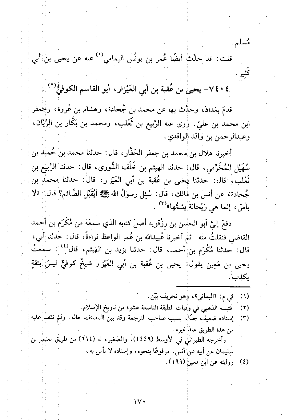7404 - يحيى بن عقبة بن أبي العيزار أبو القاسم الكوفي