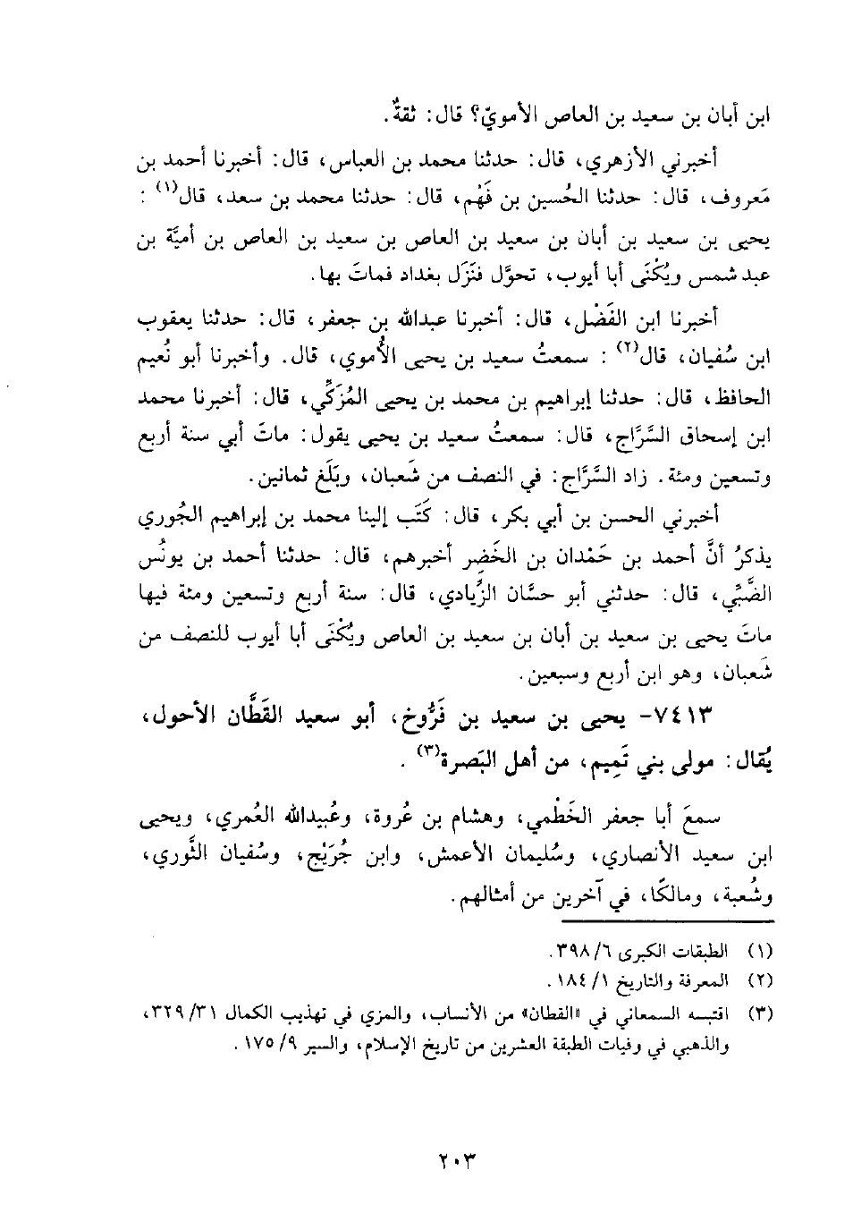 7413 - يَحْيَى بْن سَعِيد بْن فَرُّوخ أَبُو سَعِيد القَطَّان الأحول يُقال: مولى بَنِي تَمِيم من أهل البصرة،