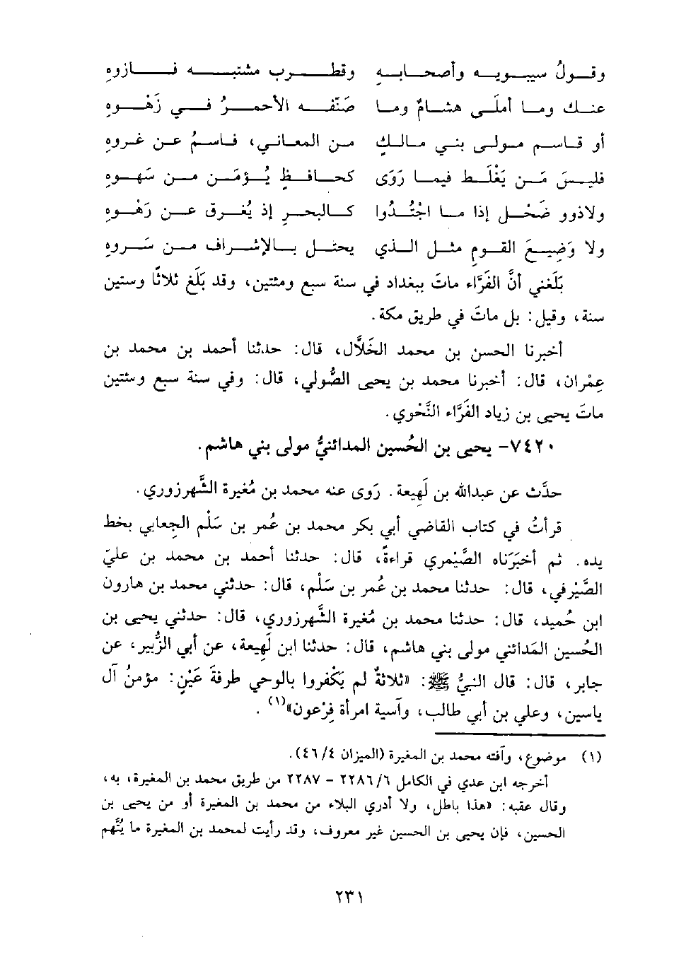 7420 - يَحْيَى بْن الْحُسَيْن المدائني مولى بَني هاشم