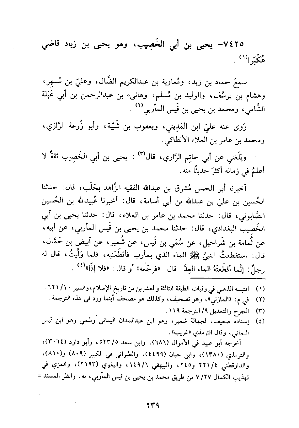 7425 - يحيى بن أبي الخصيب وهو يحيى بن زياد قاضي عكبرا