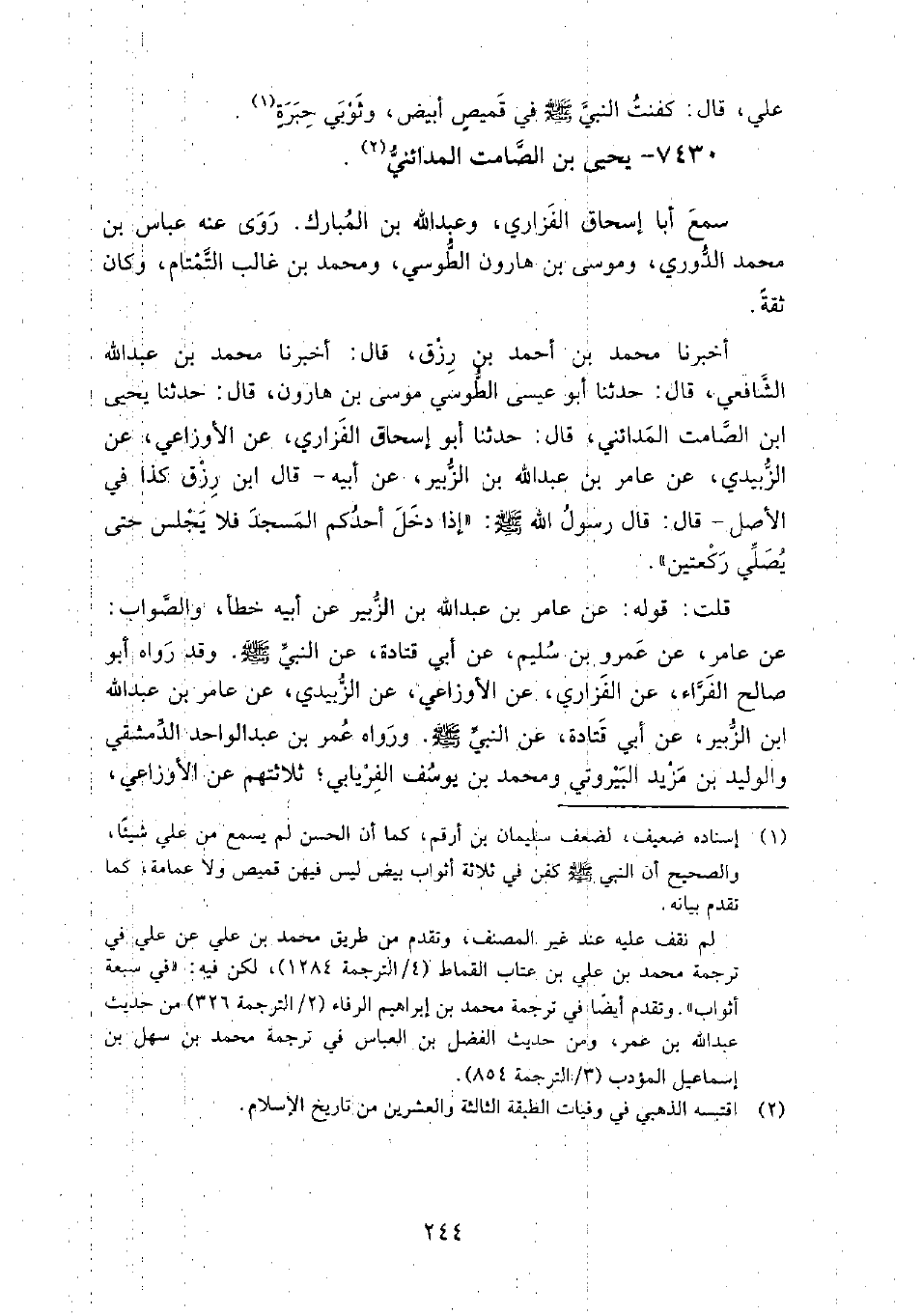 7430 - يَحْيَى بْن الصامت المدائني سَمِعَ: أَبَا إِسْحَاق الفزاري، وعبد الله بْن المبارك.