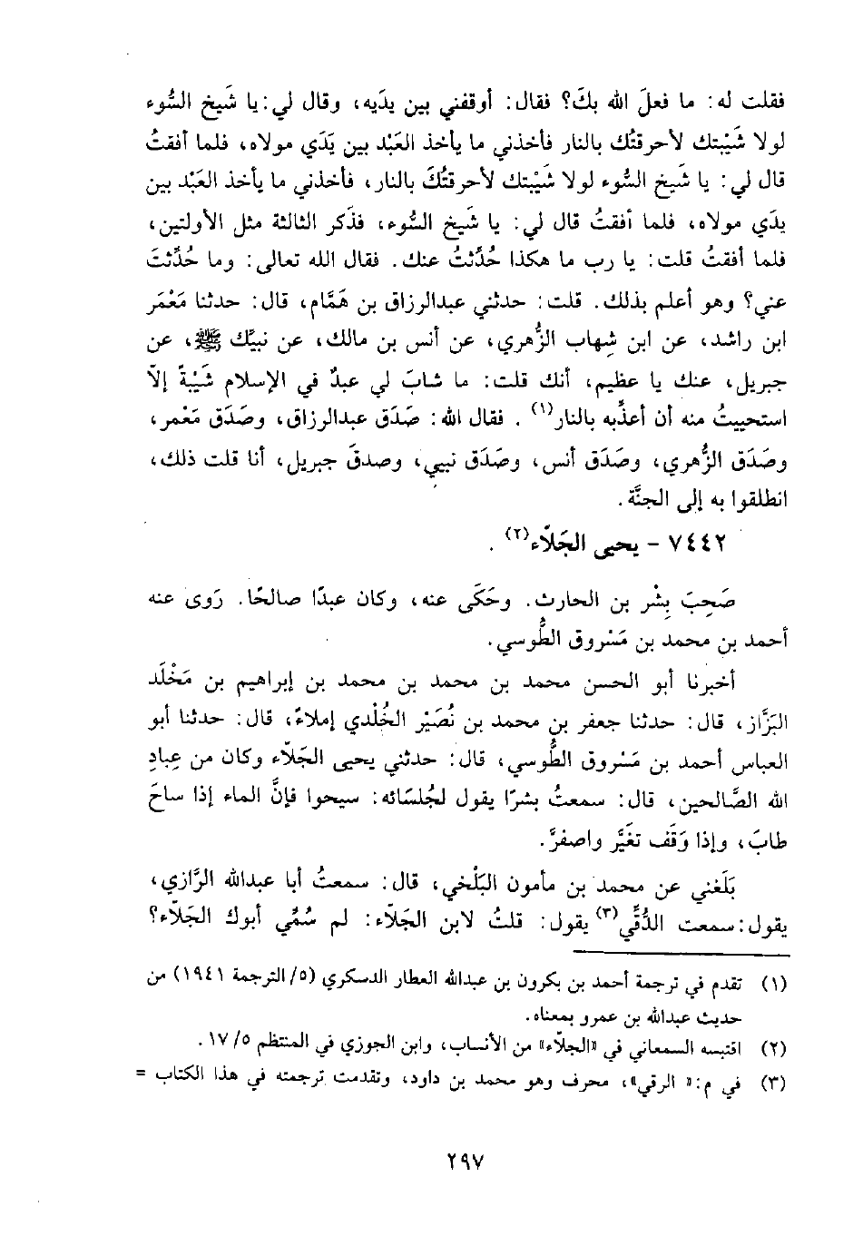 7442 - يَحْيَى الجَلاء صحبَ بشر بْن الحارث.