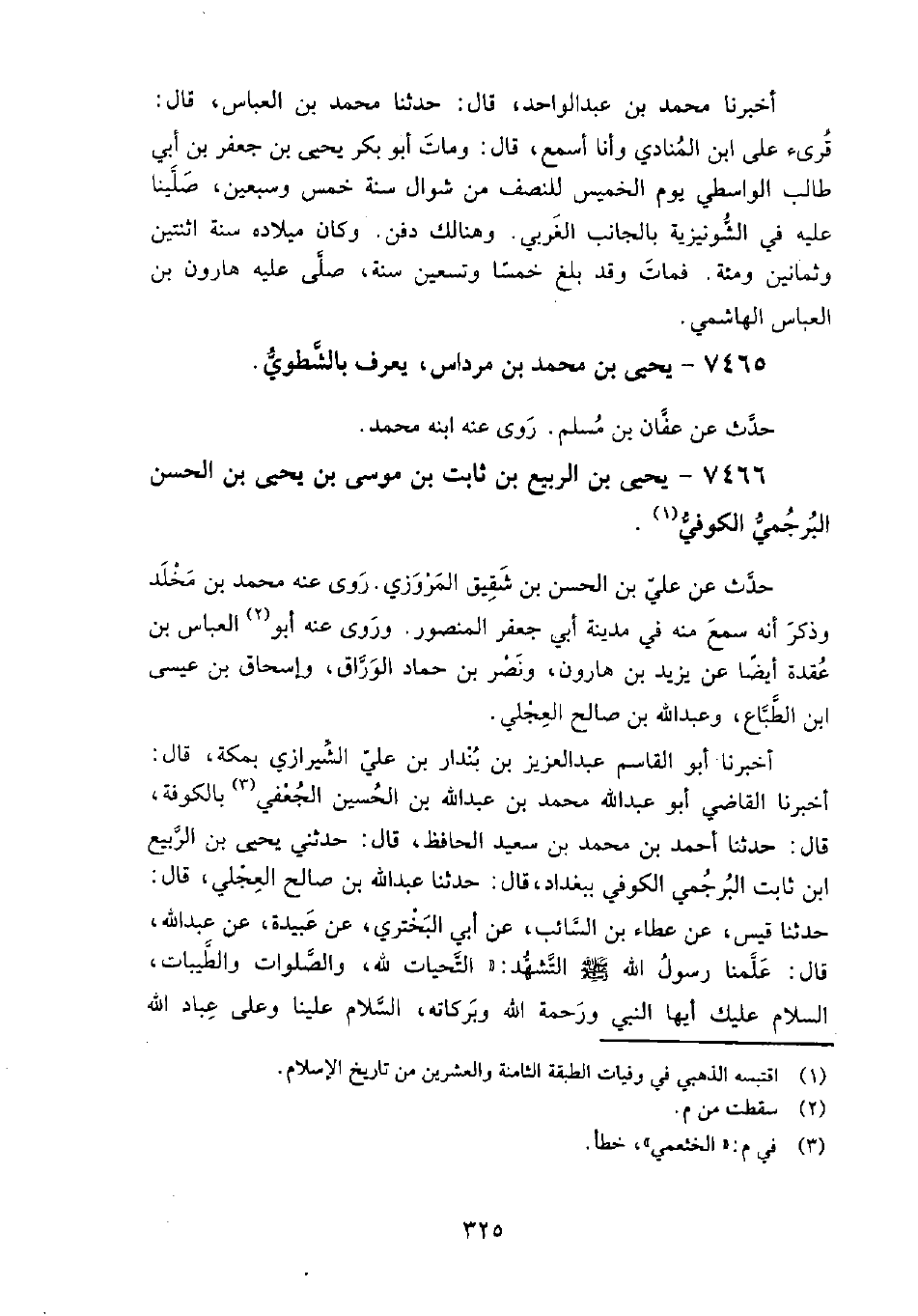 7465 - يحيى بن محمد بن مرداس يعرف بالشطوي حدث عن: عفان بن مسلم.