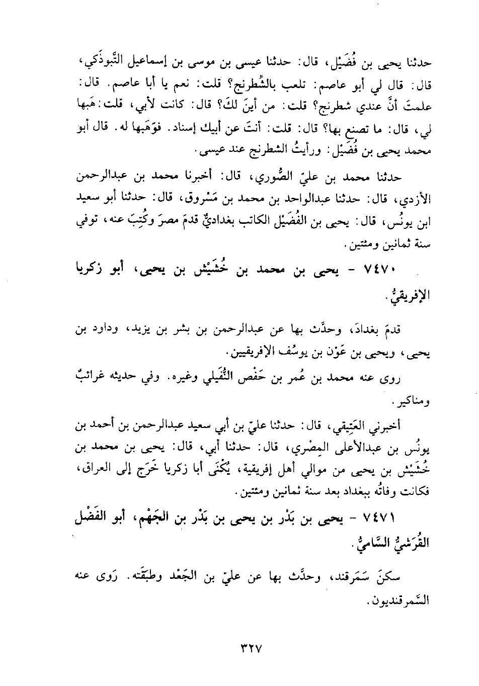 7470 - يحيى بن محمد بن خُشَيْش بن يحيى أبو زكريا الإفريقي