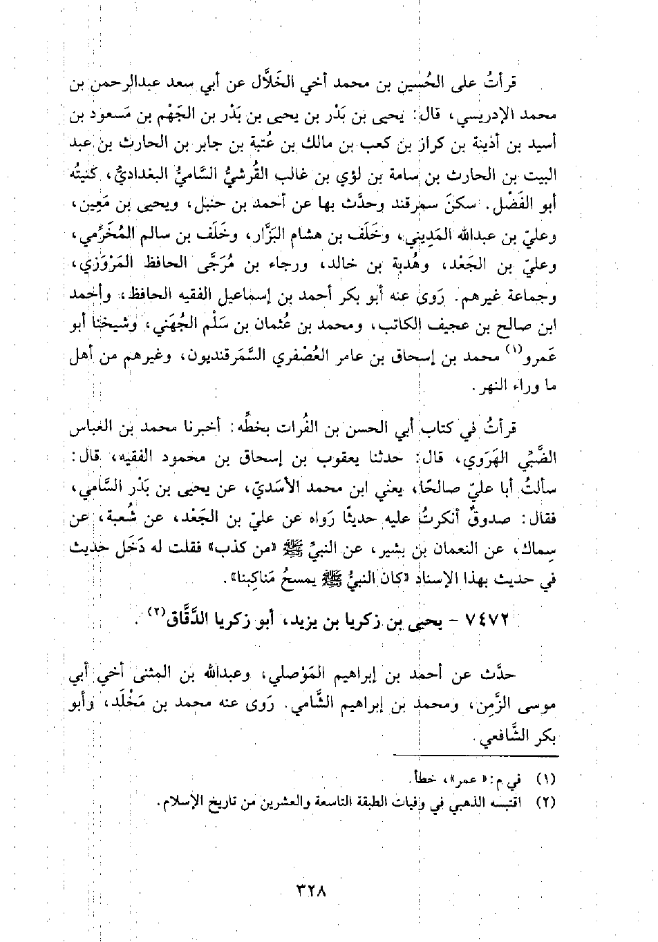 7472 - يَحْيَى بْن زكريا بْن يزيد أَبُو زكريا الدقاق حَدَّث عَن: أَحْمَد بْن إِبْرَاهِيم الْمَوْصِليّ، وعبد الله بْن المثنى أخي أبي مُوسَى الزَّمِن، وَمُحَمَّد بْن إِبْرَاهِيم الشامي.