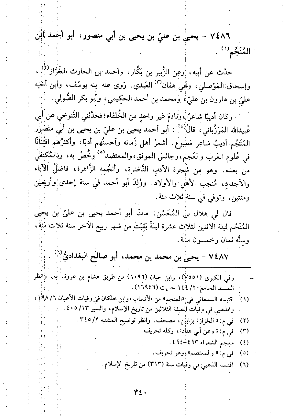 7486 - يَحْيَى بْن عَلِيّ بْن يَحْيَى بْن أبي منصور أَبُو أَحْمَد ابْن المنجم