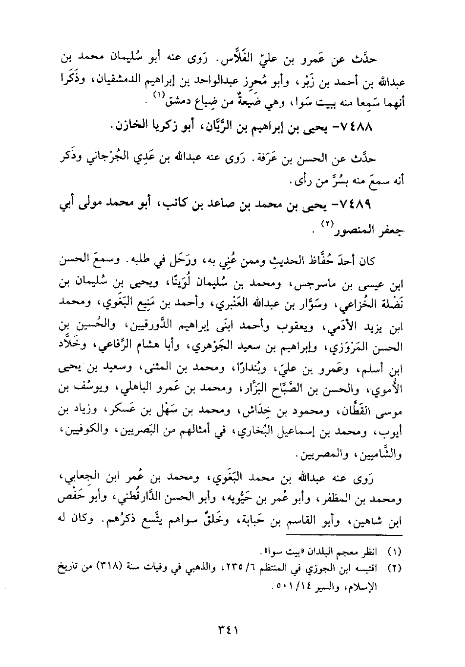 7488 - يحيى بن إبراهيم بن الريان أبو زكريا الخازن حدث عن: الحسن بن عرفة.