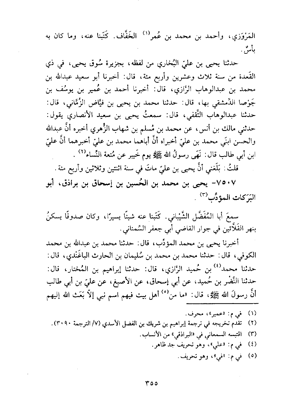 7507 - يَحْيَى بْن مُحَمَّد بْن الْحُسَيْن بْن إِسْحَاق بْن براذق أَبُو البركات المؤدب سَمِعَ: أَبَا المفضل الشيباني، كتبنا عَنْهُ شيئًا يسيرًا، وكان صدوقًا يسكنُ بنهر القلائين فِي جوار القاضي أَبي جَعْفَر السمناني.