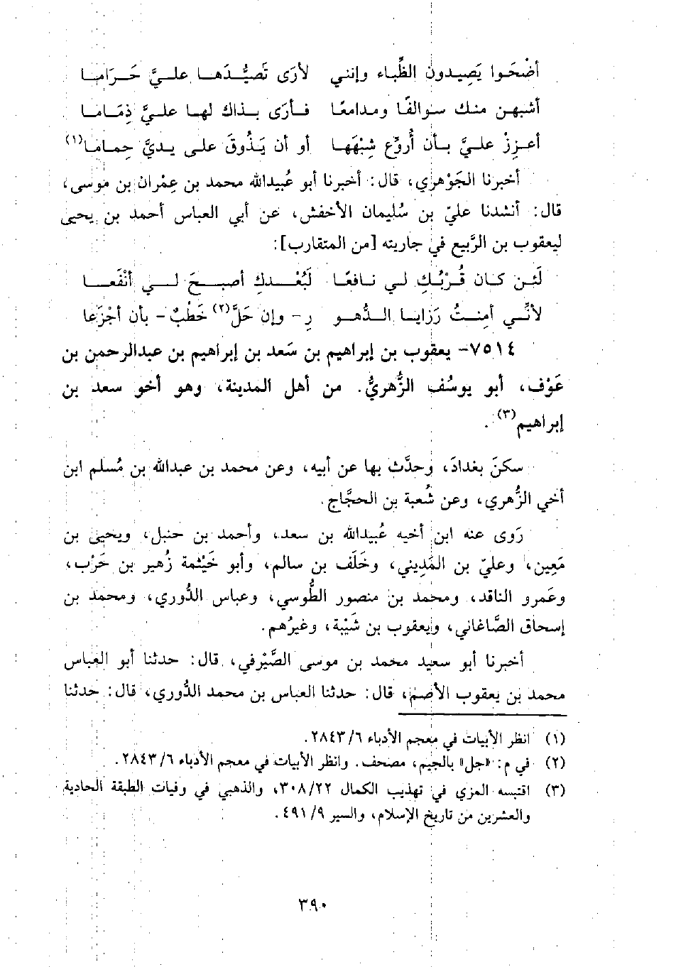 (4745) -[16: 390] أَخْبَرَنَا أَبُو سَعِيدٍ مُحَمَّدُ بْنُ مُوسَى الصَّيْرَفِيُّ، قَالَ: حَدَّثَنَا أَبُو الْعَبَّاسِ مُحَمَّدُ بْنُ يَعْقُوبَ الأَصَمُّ، قَالَ: حَدَّثَنَا الْعَبَّاسُ بْنُ مُحَمَّدٍ الدُّورِيُّ، قَالَ: حَدَّثَنَا يَعْقُوبُ بْنُ إِبْرَاهِيمَ بْنِ سَعْدٍ، قَالَ: حَدَّثَنَا أَبِي، عَنْ صَالِحِ بْنِ كَيْسَانَ، قَالَ: حَدَّثَنِي نَافِعٌ: أَنَّ عَبْدَ اللَّهِ، قَالَ: إِنَّ رَسُولَ اللَّهِ، صَلَّى اللَّهُ عَلَيْهِ وَسَلَّمَ قَالَ: " مَثَلُ الْمُنَافِقِ كَمَثَلِ الشَّاةِ الْعَائِرَةِ بَيْنَ الْغَنَمَيْنِ، تَعِيرُ إِلَى هَذِهِ مَرَّةً وَإِلَى هَذِهِ مَرَّةً، لا تَدْرِي أَيَّهُمَا تَتْبَعُ " أَخْبَرَنَا أَبُو بَكْر أَحْمَد بْن مُحَمَّد الأشناني، قَالَ: سمعتُ أَحْمَد بْن مُحَمَّد بْن عبدوس الطرائفي، يَقُولُ: سمعتُ عثمان بْن سَعِيد الدارمي، يَقُولُ: وسألته، يعني: يَحْيَى بْن معين، عَن يعقوب بْن إِبْرَاهِيم بْن سعد، فقال: ثقةٌ، قلتُ: فأخوه؟ فقال: ثقةٌ أَخْبَرَنَا الصيمري، قَالَ: حَدَّثَنَا عَلِيّ بْن الْحَسَن الرازي، قَالَ: حَدَّثَنَا مُحَمَّد بْن الْحُسَيْن الزعفراني، قَالَ: حَدَّثَنَا أَحْمَد بْن زهير، قَالَ: سُئِلَ يَحْيَى بْن معين عَن يعقوب بْن إِبْرَاهِيم سَمِعَ المغازي من أَبِيهِ وعرضها؟ قَالَ: أحسن حالاته أن يكون عرضها؛ لأنَّ العرض والسماع عندهم واحد أَخْبَرَنَا حمزة بْن مُحَمَّد بْن طاهر، قَالَ: حَدَّثَنَا الوليد بْن بَكْر الأندلسي، قَالَ: حَدَّثَنَا عَلِيّ بْن أَحْمَد بْن زكريا الهاشمي، قَالَ: حَدَّثَنَا أَبُو مُسلم صالِح بْن أَحْمَد بْن عَبْد الله العجلي، قَالَ: حدَّثَنِي أبي، قَالَ: ويعقوب بْن إِبْرَاهِيم بْن سعد بْن إِبْرَاهِيم بْن عَبْد الرَّحْمَن بْن عوف ثقة أَخْبَرَنَا الأزهري، قَالَ: حَدَّثَنَا مُحَمَّد بْن الْعَبَّاس، قَالَ: حَدَّثَنَا أَحْمَد بْن معروف، قَالَ: حَدَّثَنَا الْحُسَيْن بْن فَهْم، قَالَ: حَدَّثَنَا مُحَمَّد بْن سعد، قَالَ: يعقوب بْن إِبْرَاهِيم بْن سعد يُكنى أَبَا يوسف، وكان ثقةً مأمونًا، يُقدَّمُ عَلَى أخيه فِي الفضل والورع والحديث، ولم يزل ببغداد، ثُمَّ خرج إلى الْحَسَن بْن سهل وهو بفم الصلح فلم يزل معه حتى تُوُفِّيَ هناك فِي شوال سنة ثَمان ومائتين، وكان أصغر من أخيه سعد بأربع سنين أَخْبَرَنَا ابن الفضل، قَالَ: أَخْبَرَنَا جَعْفَر بْن مُحَمَّد بْن نصير الخلدي، قَالَ: حَدَّثَنَا مُحَمَّد بْن عَبْد الله الحضرمي، قَالَ: مات يعقوب بْن إِبْرَاهِيم بْن سعد سنة ثَمان ومائتين
