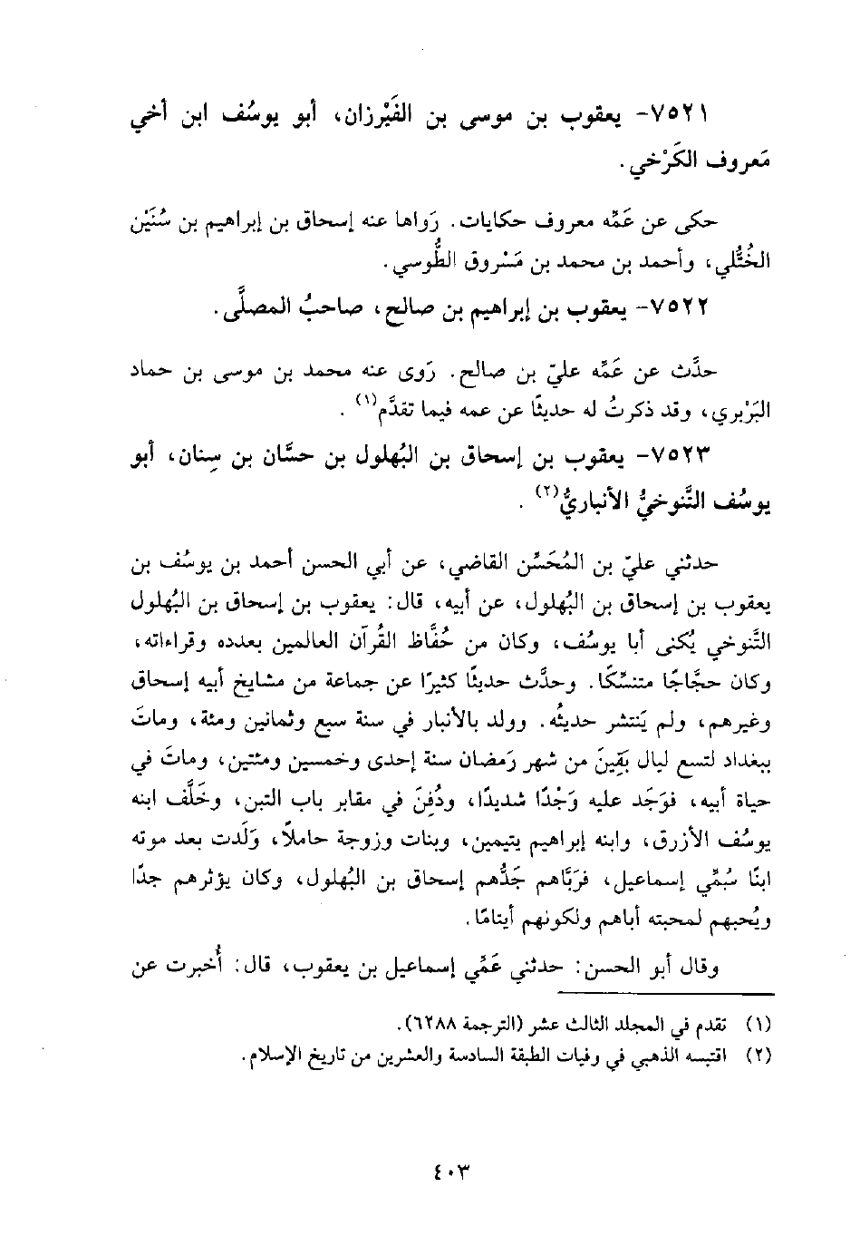7523 - يعقوب بن إسحاق بن البهلول بن حسان بن سنان أبو يوسف التنوخي الأنباري