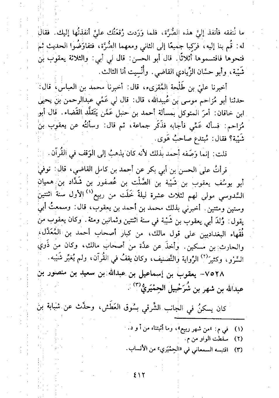 7528 - يعقوب بْن إِسْمَاعِيل بْن عَبْد الله بْن سَعِيد بْن منصور بْن عَبْد الله بْن شهر بْن شرحبيل الحميري كَانَ يسكن فِي الجانب الشرقي بسوق العطش، وحدث عَن: شبابة بْن سوار، ويونس بْن مُحَمَّد المؤدب.