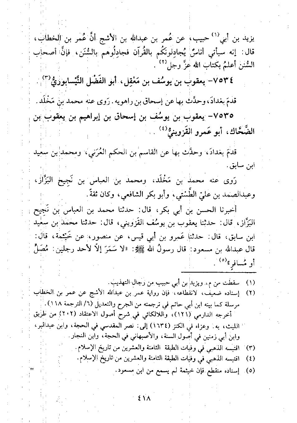 7535 - يعقوب بْن يوسف بْن إِسْحَاق بْن إِبْرَاهِيم بْن يعقوب بْن الضحاك أَبُو عمرو القزويني قدم بغداد، وحدث بِهَا عَن: القاسم بْن الحكم الْعُرَني، وَمُحَمَّد بْن سَعِيد بْن سابق.