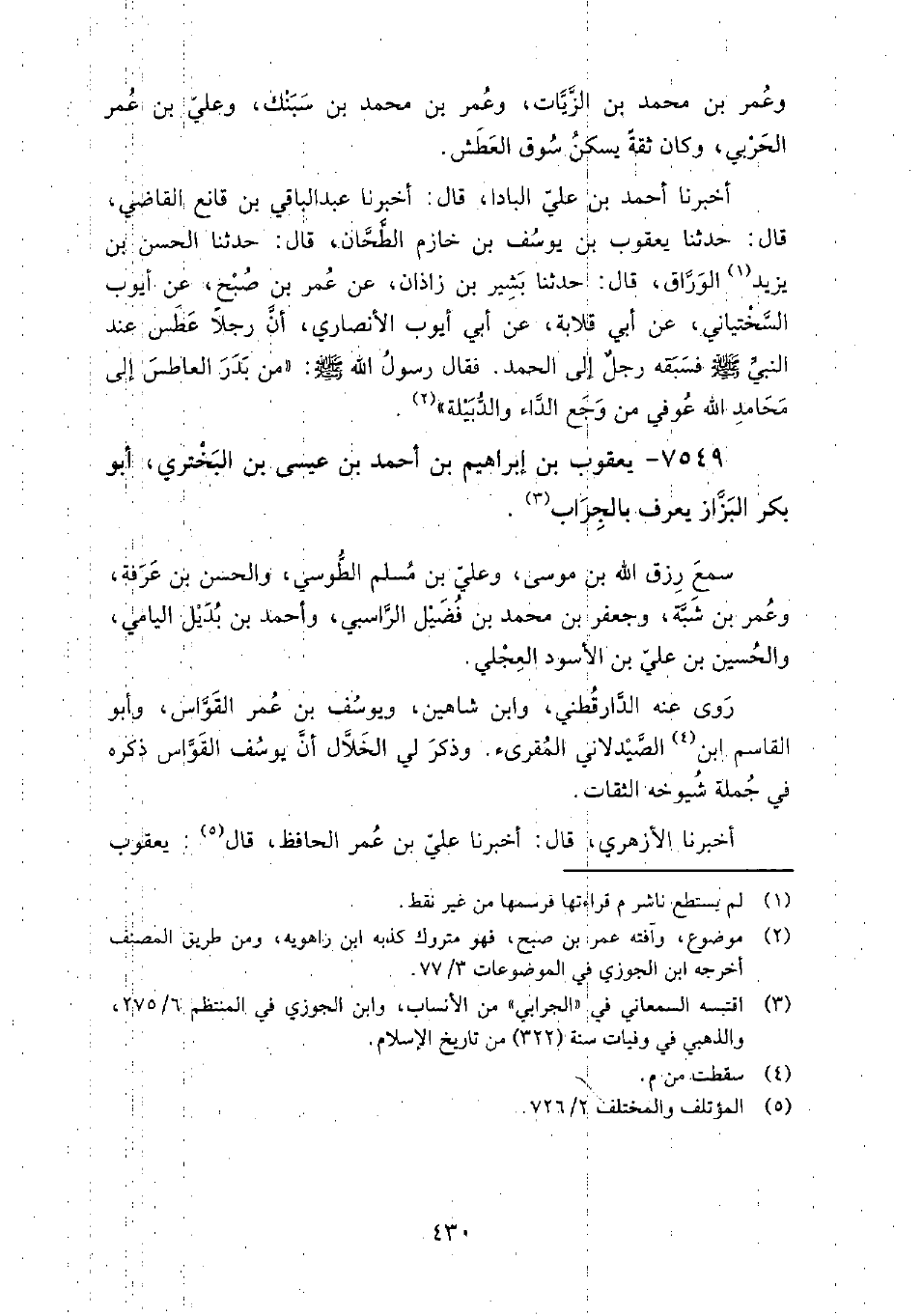 7549 - يعقوب بن إبراهيم بن أحمد بن عيسى بن البختري أبو بكر البزاز يعرف بالجراب