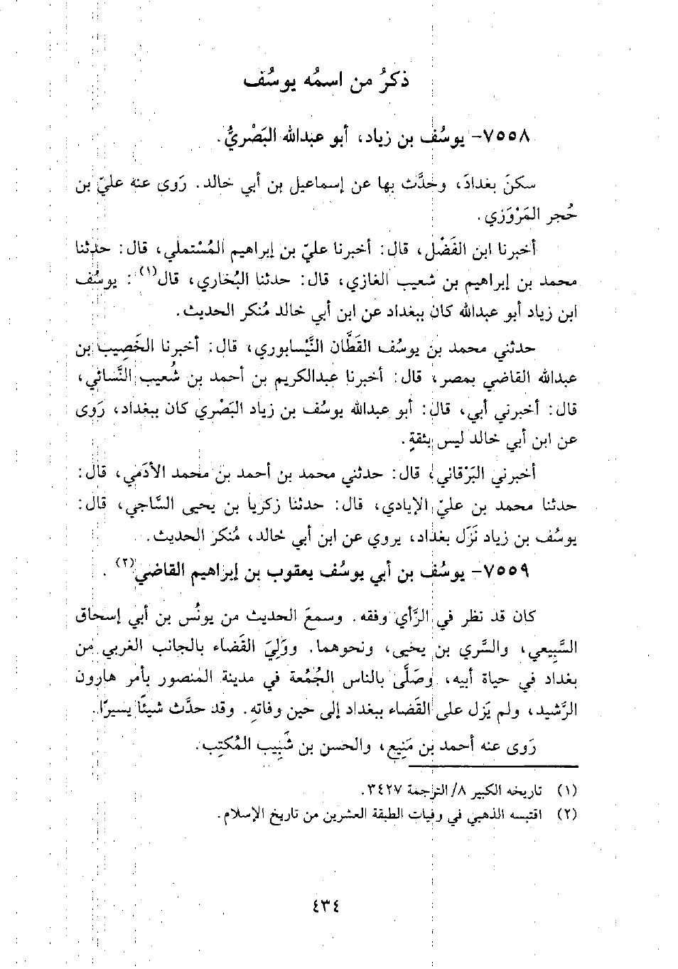 7558 - يوسف بن زياد أبو عبد الله البصري سكن بغداد، وحدث بِهَا عَن: إِسْمَاعِيل بْن أبي خَالِد.