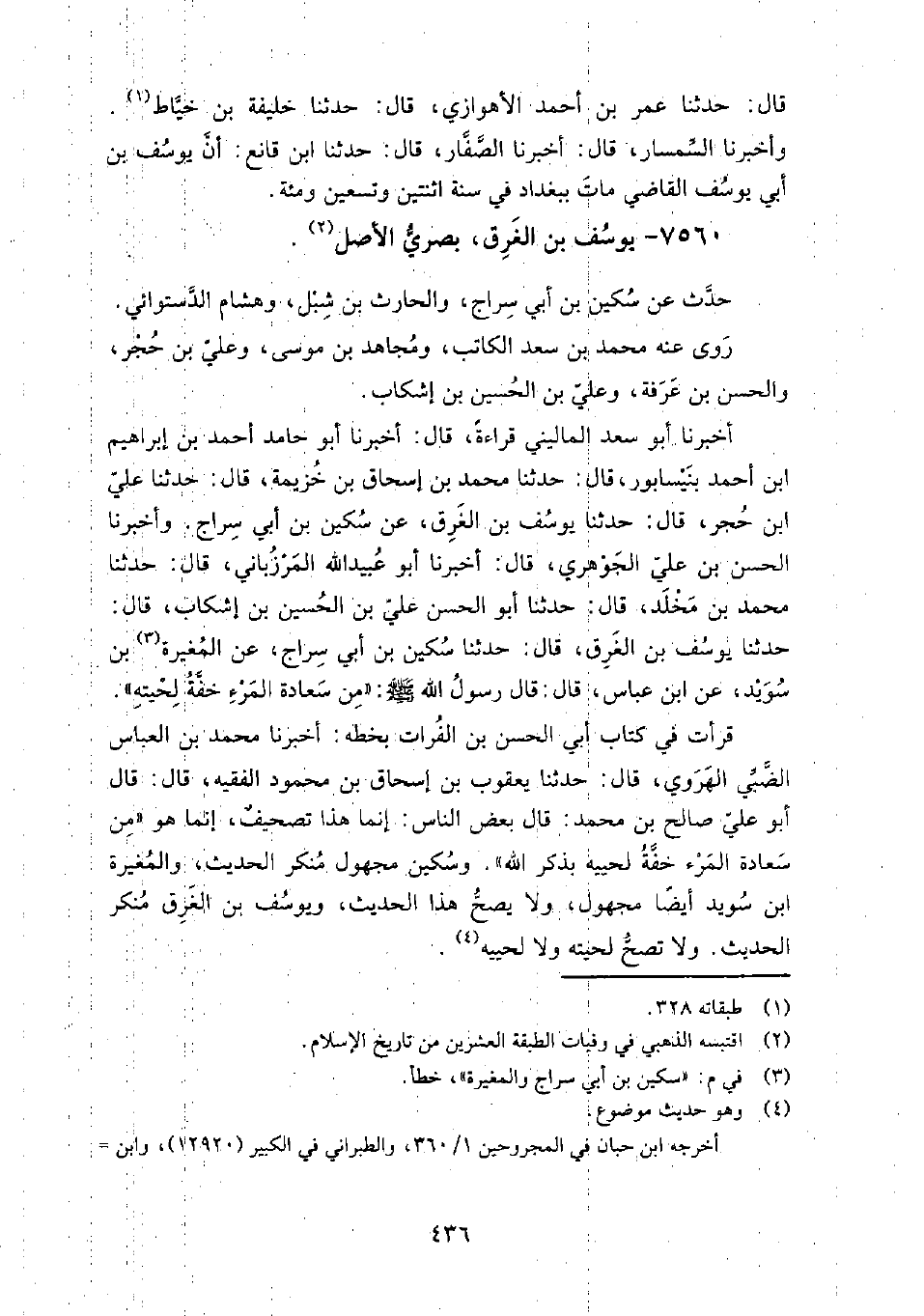 7560 - يوسف بن الغرق بصري الأصل حدث عن: سكين بن أبي سراج، والحارث بن شبل، وهشام الدستوائي.