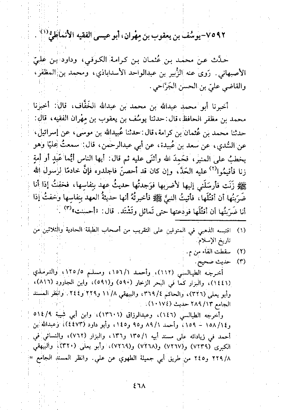 7592 - يوسف بْن يعقوب بْن مهران أَبُو عيسى الفقيه الأنماطي حَدَّثَ عَنْ: مُحَمَّدِ بْنِ عُثْمَانَ بْنِ كَرَامَةَ الْكُوفِيِّ وَدَاوُدَ بْنِ عَلِيٍّ الأَصْبَهَانِيِّ.