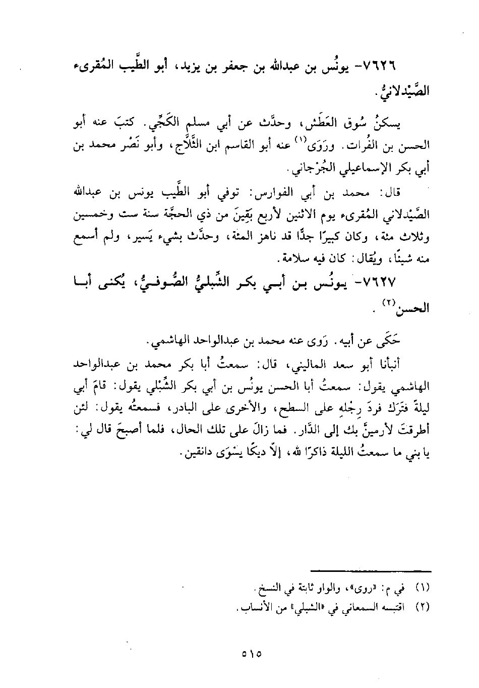 7627 - يونس بن أبي بكر الشبلي الصوفي يكنى أبا الحسن حكى عن: أبيه.