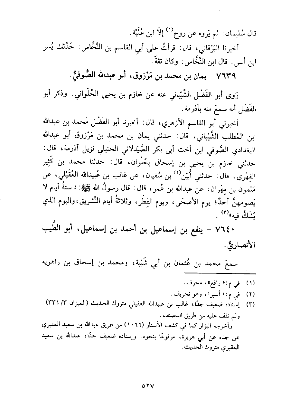 7639 - يَمان بن محمد بن مرزوق أبو عبد الله الصوفي رَوَى أَبُو الفضل الشيباني عَنْهُ، عَن خازم بْن يَحْيَى الحلواني، وذكر أَبُو الفضل أَنَّهُ سَمِعَ منه بأذرمة.
