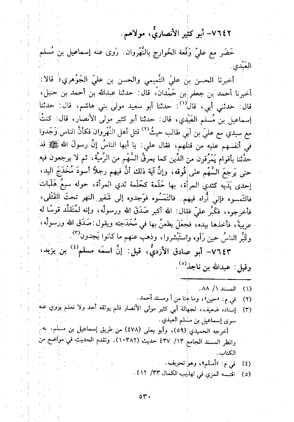 7642 - أبو كثير الأنصاري مولاهم حَضَرَ مَعَ علي وقعة الخوارج بالنهروان.