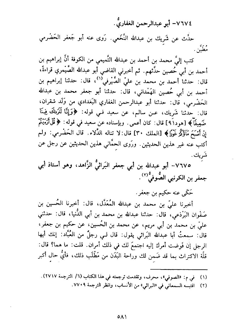 7675 - أبو عبد الله بن أبي جعفر البراثي الزاهد وهو أستاذ أبي جعفر بن الكرنبي الصوفي حَكَى عَنْهُ: حكيم بْن جَعْفَر.
