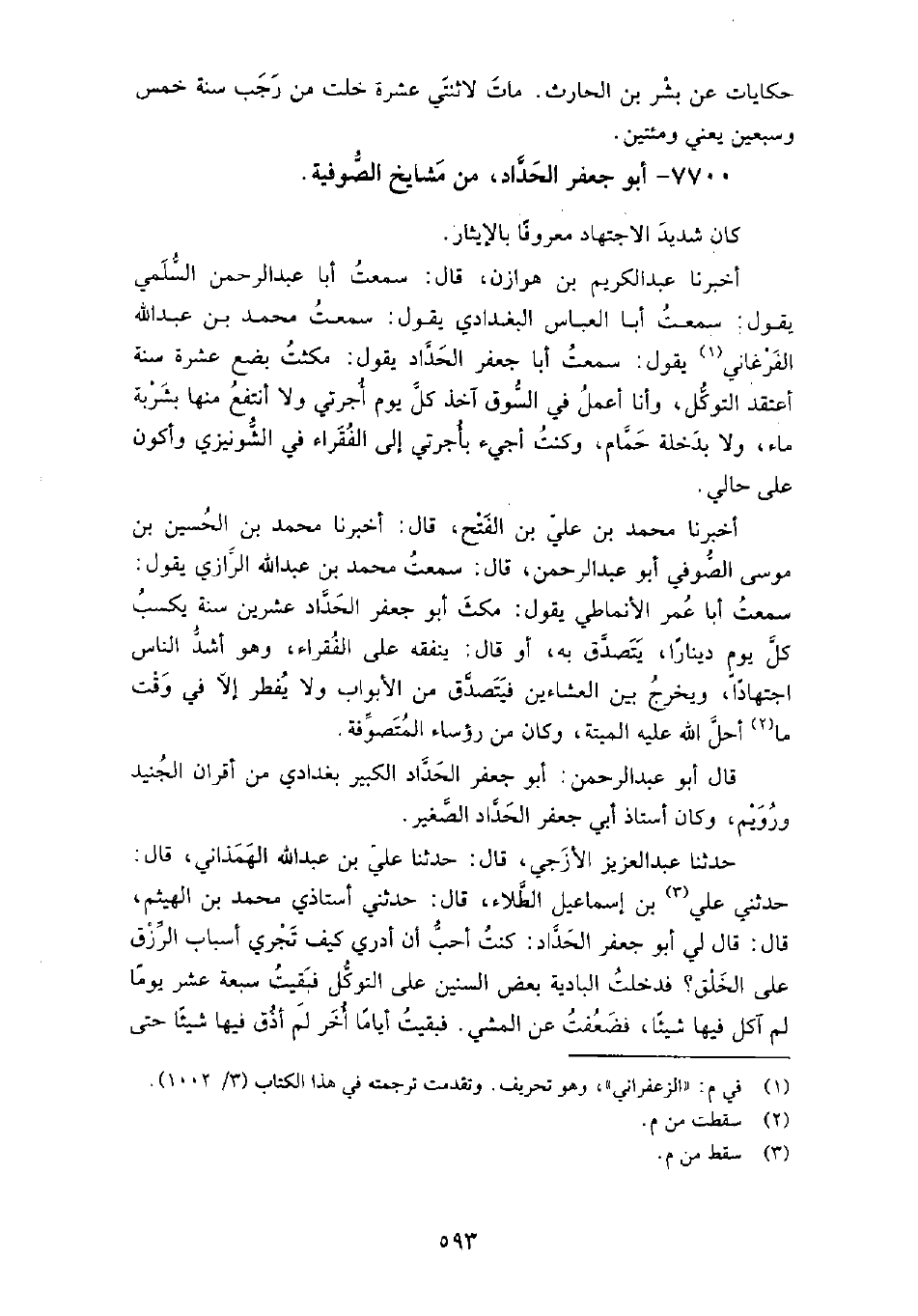 7700 - أبو جعفر الحداد من مشايخ الصوفية كَانَ شديد الاجتهاد، معروفًا بالإيثار.