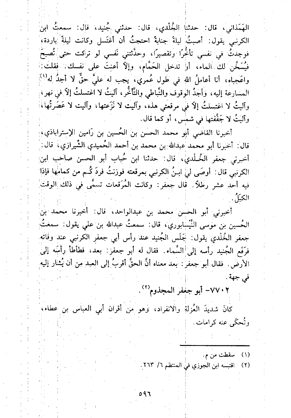 7702 - أبو جعفر المجذوم كَانَ شديد الْعُزلة والانفراد، وهو من أقران أبي الْعَبَّاس بْن عطاء، وتُحكَى عَنْهُ كرامات.