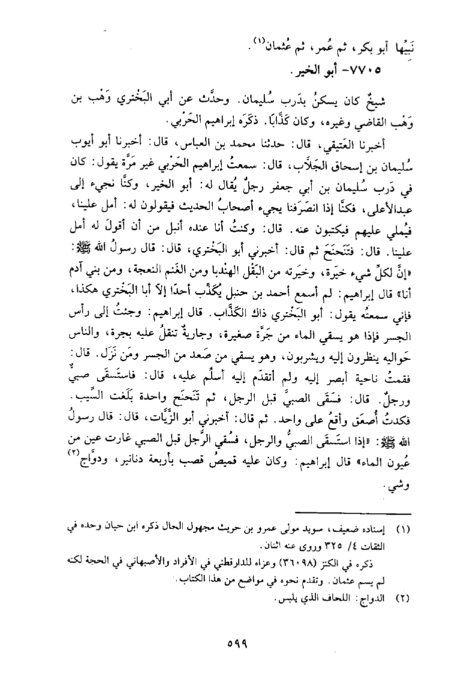 7705 - أبو الخير شيخ كان يسكن بدرب سليمان، وحدث عن: أبي البختري وهب بن وهب القاضي، وغيره، وكان كذابا.