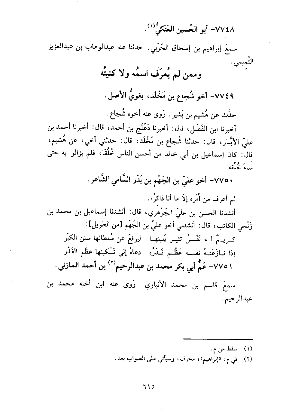 7749 - أخو شجاع بن مخلد بغوي الأصل حدث عن: هشيم بن بشير.