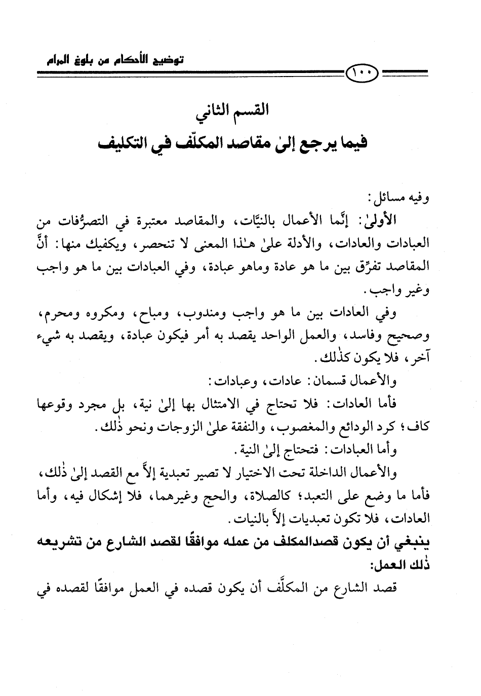 القسم الثاني فيما يرجع إلى مقاصد المكلّف في التكليف
