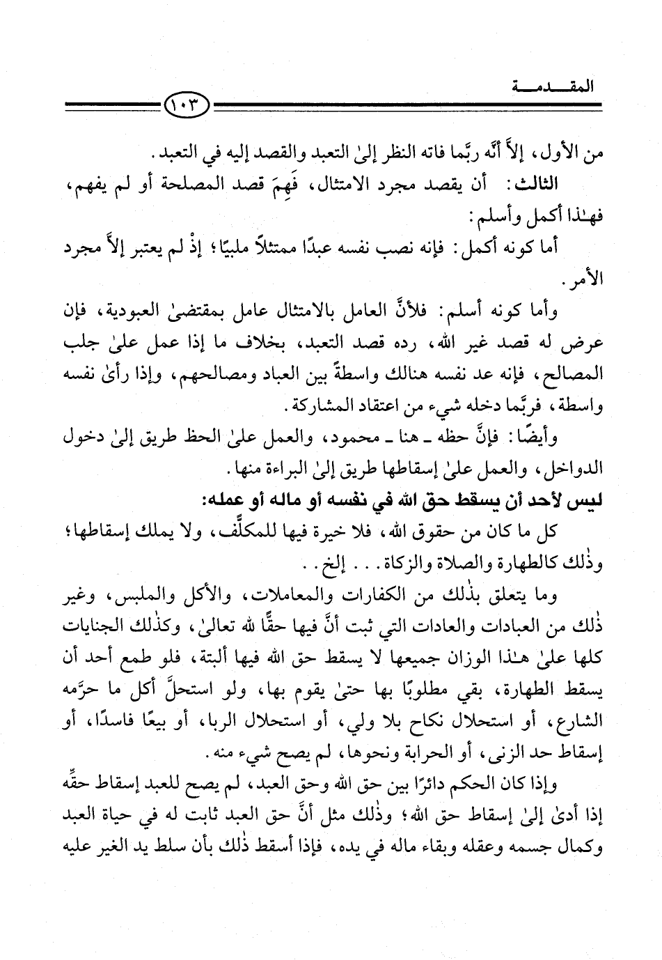 وأما كونه أسلم: فلأنَّ العامل بالامتثال عامل بمقتضى العبودية، فإن عرض له قصد غير الله، رده قصد التعبد، بخلاف ما إذا عمل على جلب المصالح، فإنه عد نفسه هنالك واسطةً بين العباد ومصالحهم، وإذا رأى نفسه واسطة، فربَّما دخله شيء من اعتقاد المشاركة.
