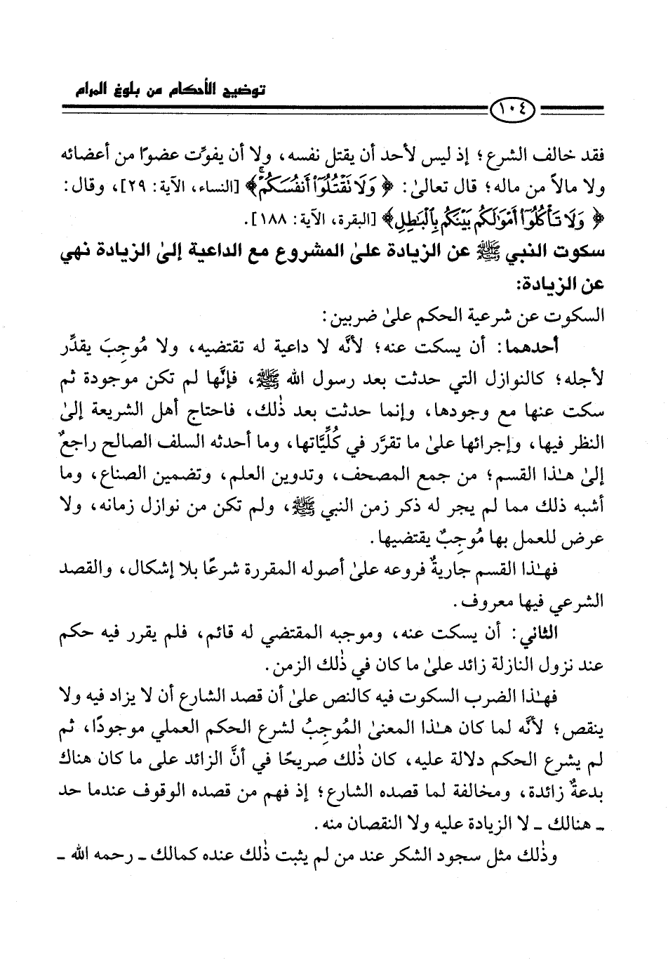 سكوت النبي -صلى الله عليه وسلم- عن الزيادة على المشروع مع الداعية إلى الزيادة نهي عن الزيادة: