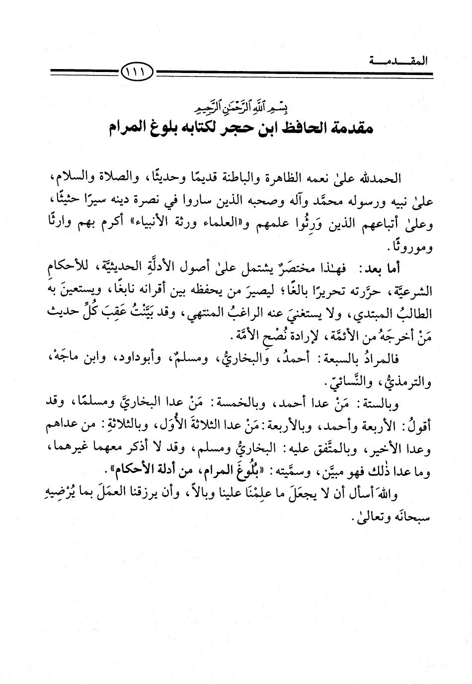 مقدمة الحافظ ابن حجر لكتابه بلوغ المرام