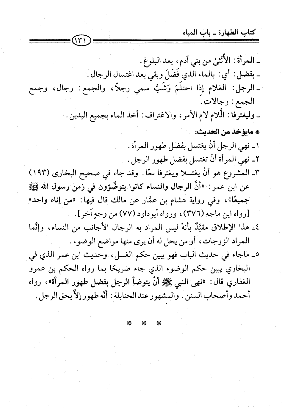 1 - نهي الرجل أنْ يغتسل بفضل طهور المرأة.