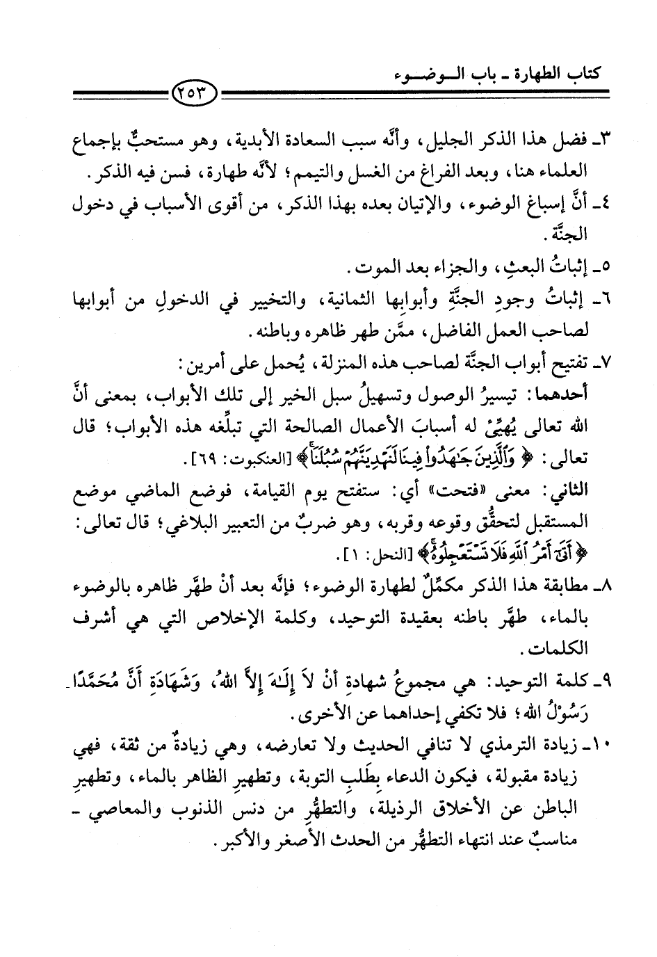 3 - فضل هذا الذكر الجليل، وأنَّه سبب السعادة الأبدية، وهو مستحبٌّ بإجماع العلماء هنا، وبعد الفراغ من الغسل والتيمم؛ لأنَّه طهارة، فسن فيه الذكر.