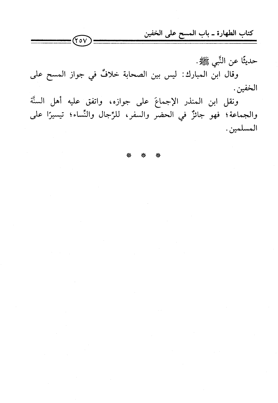 وقال ابن المبارك: ليس بين الصحابة خلافٌ في جواز المسح على الخفين.