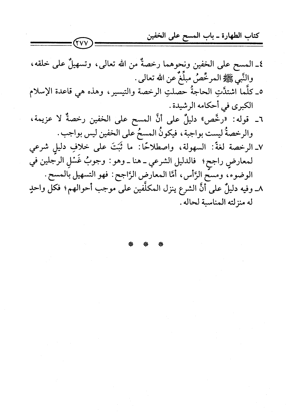 4 - المسح على الخفين ونحوهما رخصةٌ من الله تعالى، وتسهيلٌ على خلقه، والنَّبي -صلى الله عليه وسلم- المرخِّصُ مبلِّغٌ عن الله تعالى.