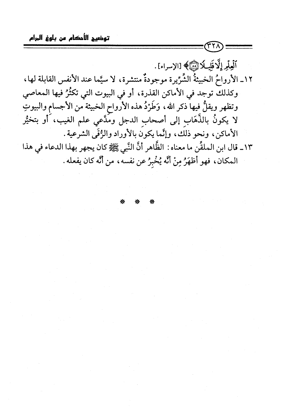 13 - قال ابن الملقِّن ما معناه: الظَّاهر أنَّ النَّبي -صلى الله عليه وسلم- كان يجهر بهذا الدعاء في هذا المكان، فهو أظهَرُ مِنْ أنَّه يُخْبِرُ عن نفسه، من أنَّه كان يفعله.
