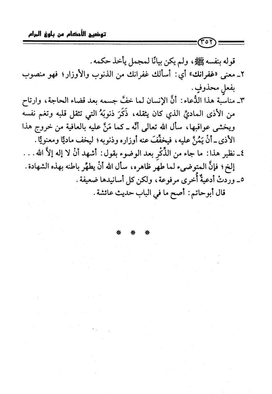 4 - نظير هذا: ما جاء من الذِّكْرِ بعد الوضوء بقول: أشهد أنْ لا إله إلاَّ الله ... إلخ؛ فإنَّ المتوضىء لما طهر ظاهره، سأل الله أنْ يطهِّر باطنه بهذه الشهادة.