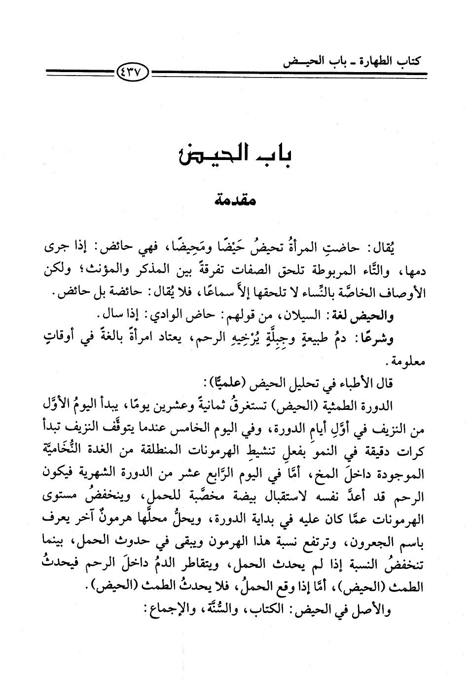 والأصل في الحيض: الكتاب، والسُّنَّة، والإجماع: