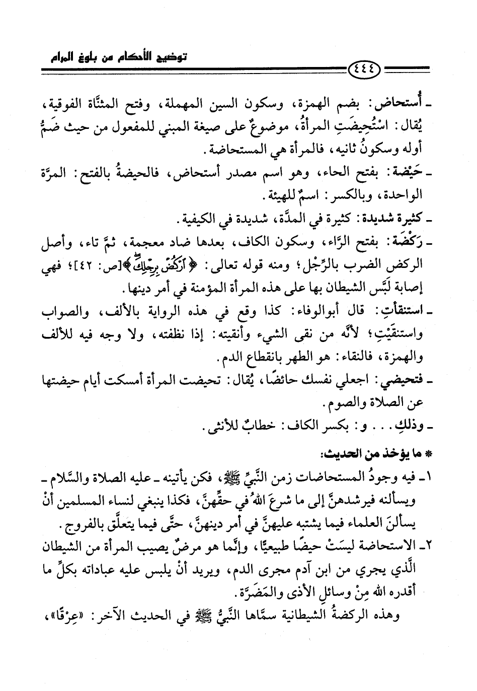 - حَيْضة: بفتح الحاء، وهو اسم مصدر أستحاض، فالحيضةُ بالفتح: المرَّة الواحدة، وبالكسر: اسمٌ للهيئة.