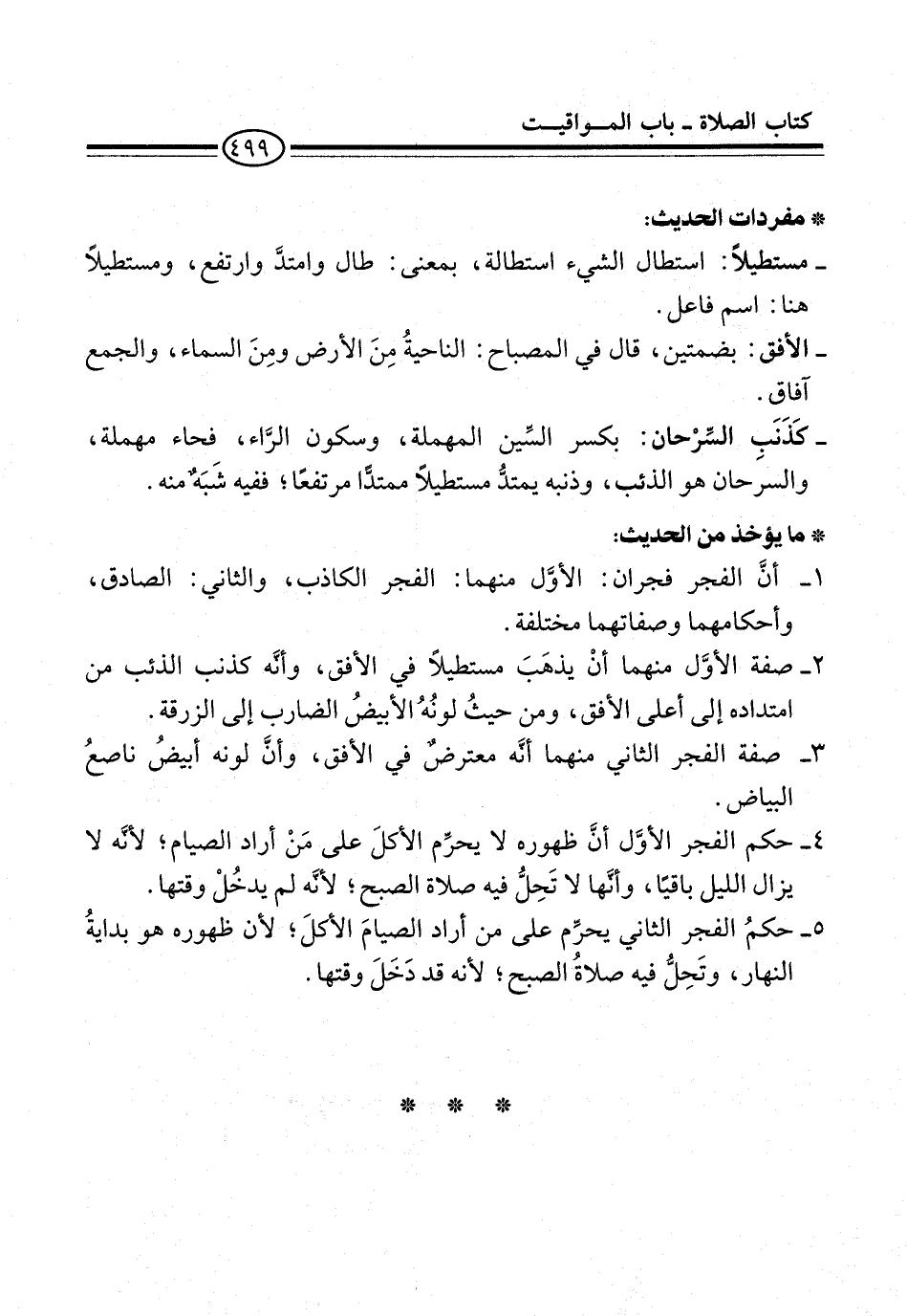 3 - صفة الفجر الثاني منهما أنَّه معترضٌ في الأفق، وأنَّ لونه أبيضُ ناصعُ البياض.