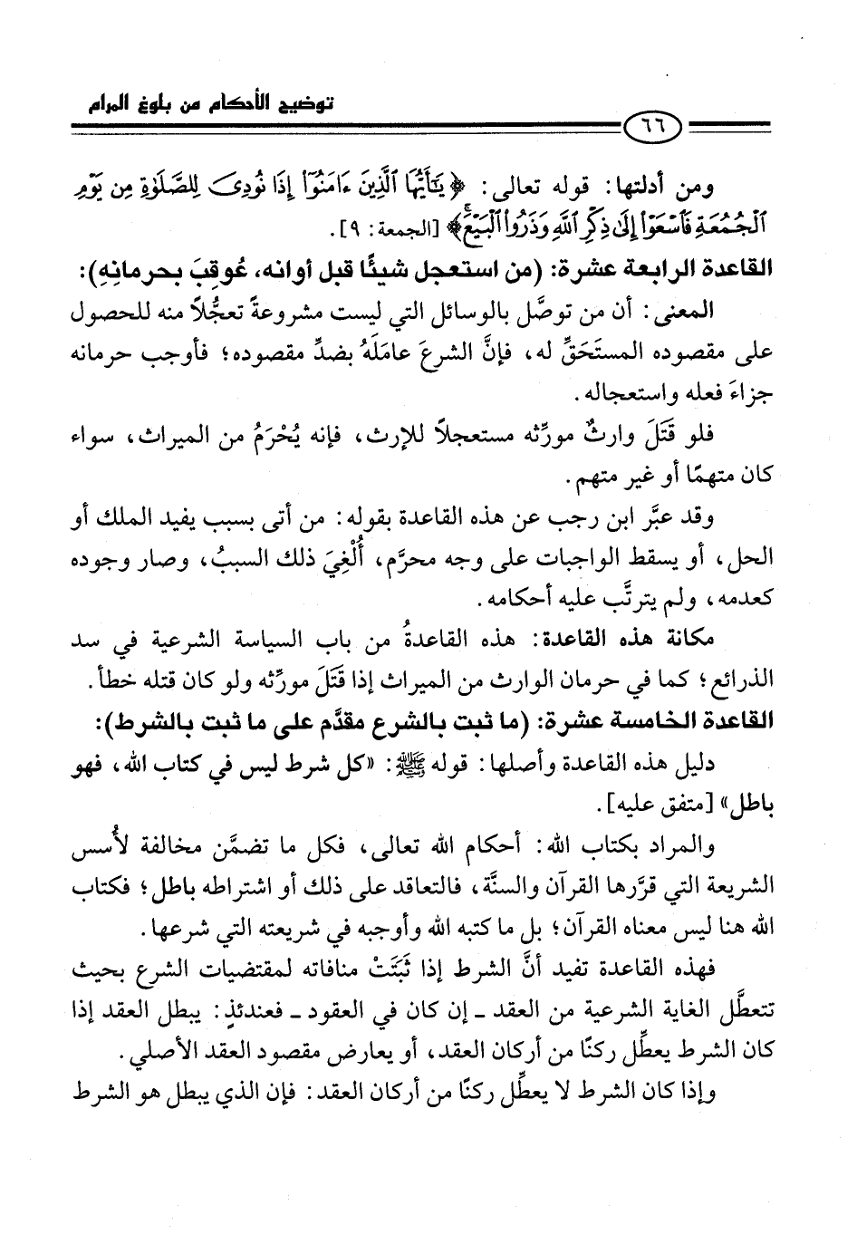 القاعدة الرابعة عشرة: (من استعجل شيئًا قبل أوانه، عُوقِبَ بحرمانِهِ):