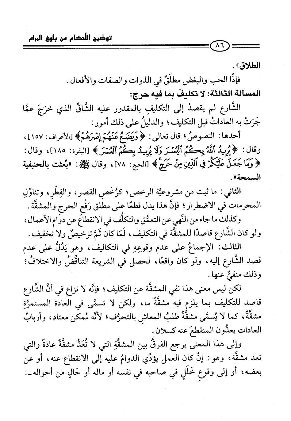المسألة الثالثة: لا تكليفَ بما فيه حرج:
