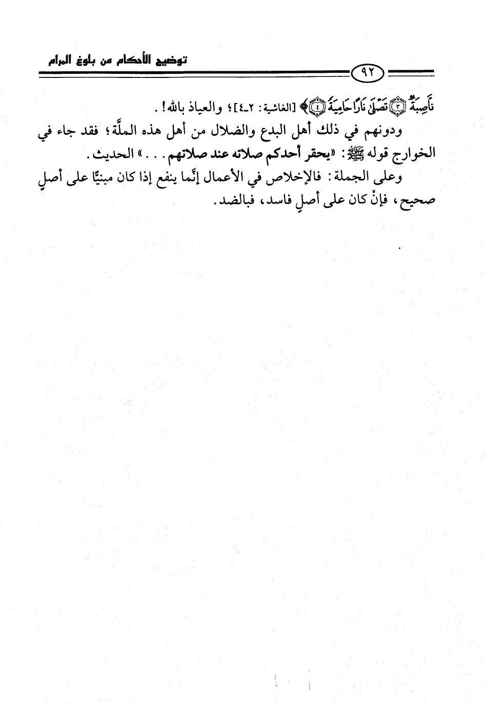 ودونهم في ذلك أهل البدع والضلال من أهل هذه الملَّة؛ فقد جاء في الخوارج قوله -صلى الله عليه وسلم-: "يحقر أحدكم صلاته عند صلاتهم ... " الحديث.